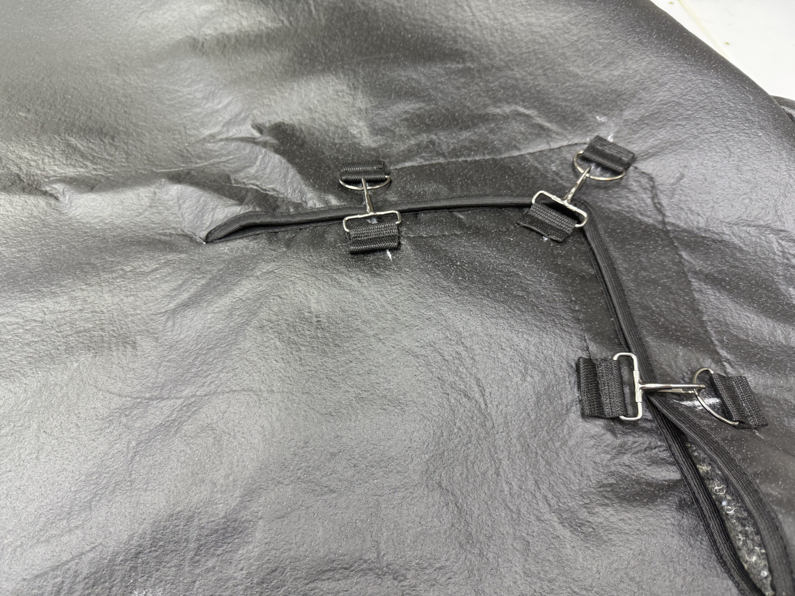 УТЕПЛИТЕЛЬ КЛИЕНТА ИЗ ПВХ И ВАТИНА, НЕ НАШЕ ПРОИЗВОДСТВО, 2 МЕСЯЦА ЭКСПЛУАТАЦИИ, ПОСТОЯННОЕ ОБЛЕДЕНЕНИЕ, ЗАМОРОЗКА, РАЗМОРОЗКА ПРИВОДЯТ К ПОТРЕСКИВАНИЮ МАТЕРИАЛА, МАТЕРИАЛ ЛОПАЕТСЯ, ТРЕСКАЕТСЯ И ВЕСЬ РАЗЪЕЗЖАЕТСЯ, СТОИМОСТЬ УТЕПЛИТЕЛЯ НА ФОТО С МЕТАЛЛИЧЕСКОЙ ФУРНИТУРОЙ 7 ТЫСЯЧ РУБЛЕЙ. СТОИМОСТЬ ДОСТАВКИ ЕГО ДО ВОРКУТЫ 5 ТЫСЯЧ РУБЛЕЙ.